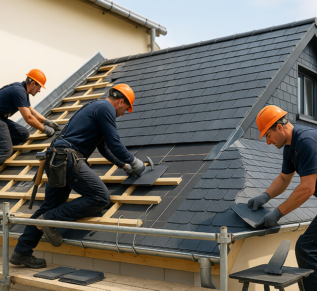 Sie möchten ein neues Schieferdach planen, eine Bestandsdeckung sanieren oder Deckarten vergleichen? Wir begleiten Sie vom ersten Beratungsgespräch über Aufmaß und Musterflächen bis zur transparenten Angebotserstellung mit klaren Leistungsbeschreibungen und Terminplan. Auf Wunsch prüfen wir vorhandene Konstruktionen, erläutern energetische Optionen (z. B. Dämmkonzepte) und klären Anschlussdetails an Gauben, Kamine und Entwässerung.