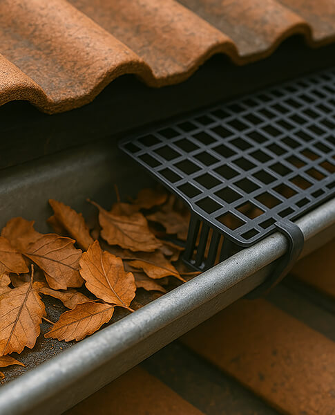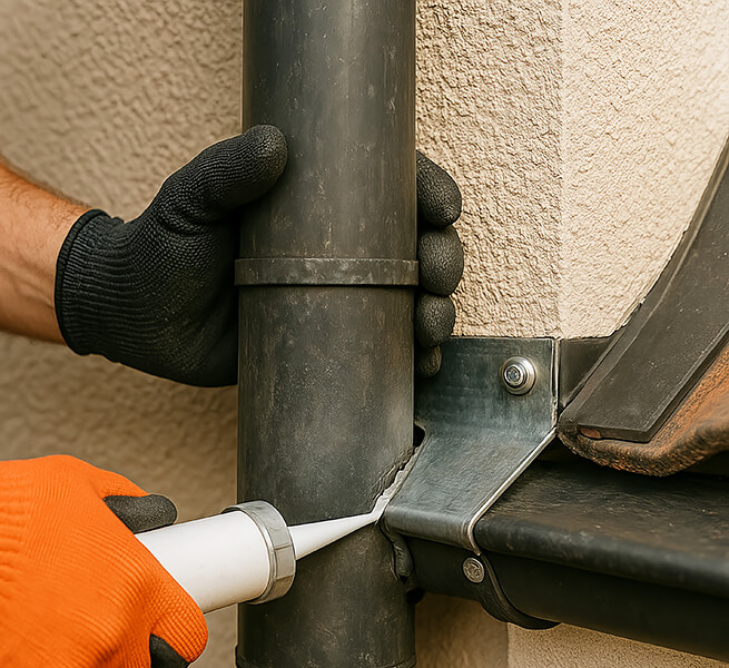 Sicherer Wasserablauf: Gereinigte Rinnen/Fallrohre verhindern Rückstau und Feuchteschäden.