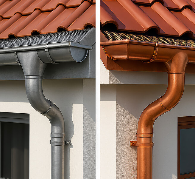 • Dachrinnen & Fallrohre – Zink, Kupfer, Aluminium, Edelstahl, korrekt dimensioniert