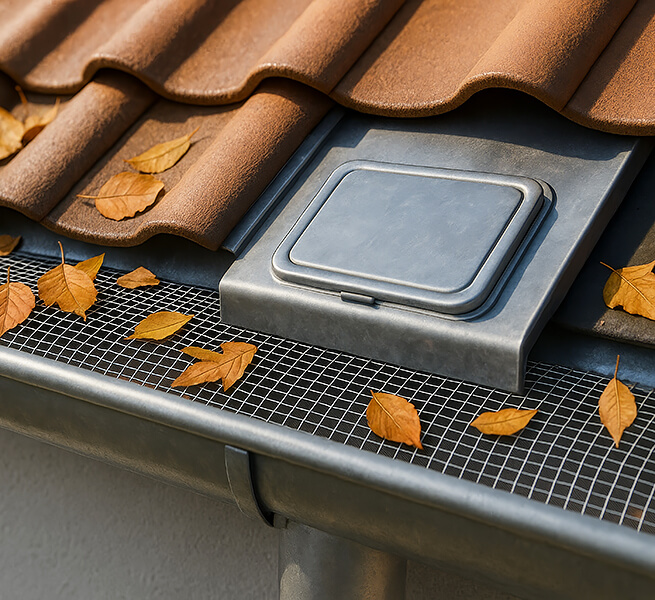 • Schutz & Komfort: Laubfang, Revisionsöffnungen, Schneefang, optionale Rinnenheizung